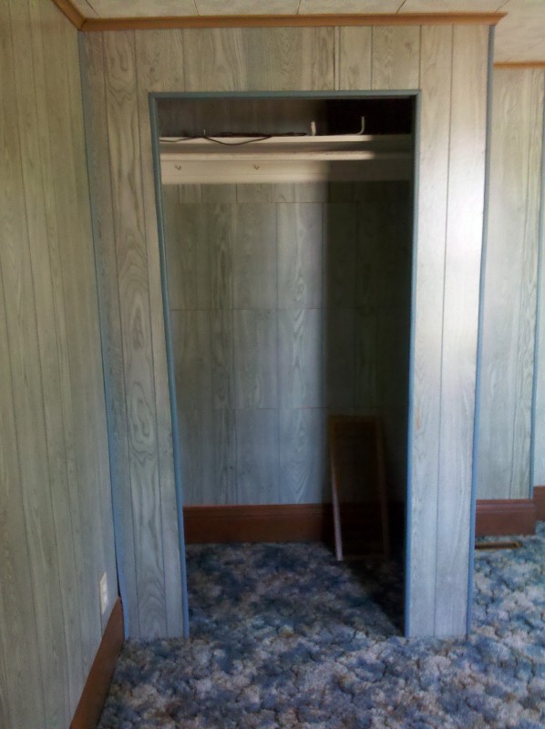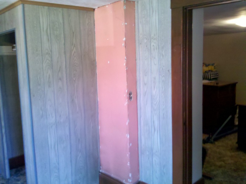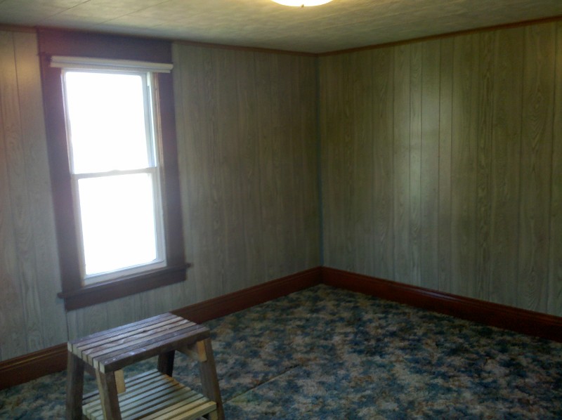Last on the to do list today was to measure out Shannon’s room for what I thought was going to be drywall. After getting done measuring everything I still had a little time left before I had to get back to Barnesville to watch the Ohio State game, so I figured I would rip out a few panels of the horrible blue, fake wood paneling that’s going to be replaced.